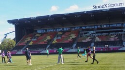 Organisation was key. The team contacted national governing bodies, booked venues, and found coaches willing to think differently. Cambridge City Council offered table tennis tables in public spaces, and John made an event of it outside the Kelsey Kerridge swimming pool, playing a friendly match against Connor Schwartz. At Cambridge United FC, halftime entertainment took the form of a football challenge: kick a ball into a skip to earn a £500 donation from a local sponsor. John’s shot missed by just six inches – but the sponsor, impressed by the effort, donated the money anyway.