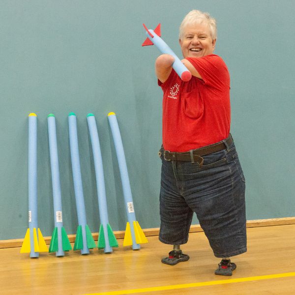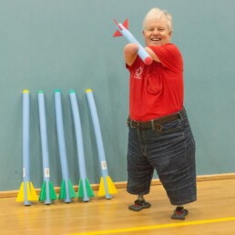 Reflecting on a slight reduction of space (part of the hall was closed off for maintenance – thanks to Ellis Maloney less than the builders said they needed!) and to honour the Athletics Club, we tried ‘throwing’. Madness, you cry, as we were indoors. But foam javelins, plastic skittles masquerading as clubs for the Paralympics Club Throw (thrown backwards from a seat) and a bean bag target game, were all really successful. By my reckoning the record throws for the foam javelin and club were set for the Centre at these games!
