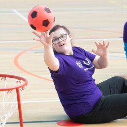 So how did we cope? We adapted. The usual 12 twelve teams of 5 became 6 teams of 7, each led by a student, gloriously decked out in pink. The six teams played three games before the snack break – goalball, sitting netball and ‘throwing’ – and three after the break, sitting volleyball, new age kurling and boccia.