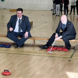 On the Thursday during the training, we were visited by the Principal, Simon Warburton, and head of Sixth Form, Adam Steels. They were so intrigued they had to have a new age kurling match – won rather convincingly it has to be said, by Mr Warburton, who seemed very pleased with himself!