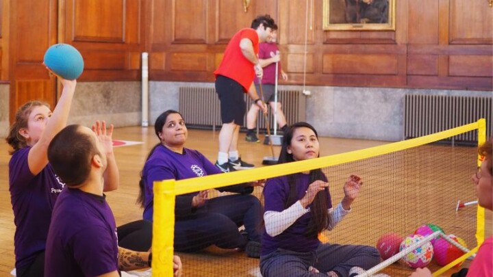 We returned to Goodenough College on Saturday 1st March for a PowerHouseGames with a difference. The forty residents and students, with their friends, played five games in the Great Hall, and learnt all about inclusive and adapted sports.