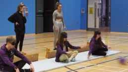 The training session, which we use when we deliver our Games2Inspire in schools, uses a bench as a goal, a blindfold for all players and the special balls with bells inside. We pair people so one acts as the player, sitting cross-legged in front of the bench, the other as their eyes, giving, hopefully clear, instructions to the player, from behind the bench.