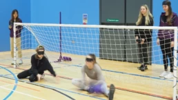 We started with goalball, taking the volunteers through a training version of the game to a limited version of the full game, all within an hour.