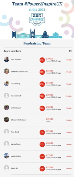 “It is not too late to support the runners by giving to fund the great work Power2Inspire does. Nobody got left on the bench on Sunday, and we work to ensure that keeps happening everywhere we go. See you all next year – Sunday 6th March 2022.”