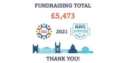 Trustees Gemma Thake and Vanessa Ibbett added to their board role by taking on the challenge. Vanessa persuaded friend Steve Barnard to run and fiancé Tom to carry the flag – literally a rucksack with a flag banner. Volunteer Steve Shaw joined Tom in moving to different vantage points on the course to cheer and clap. Dan Blackburn and family stood in Grantchester at the 8 mile banner and clapped and shouted so hard comments came back to me!